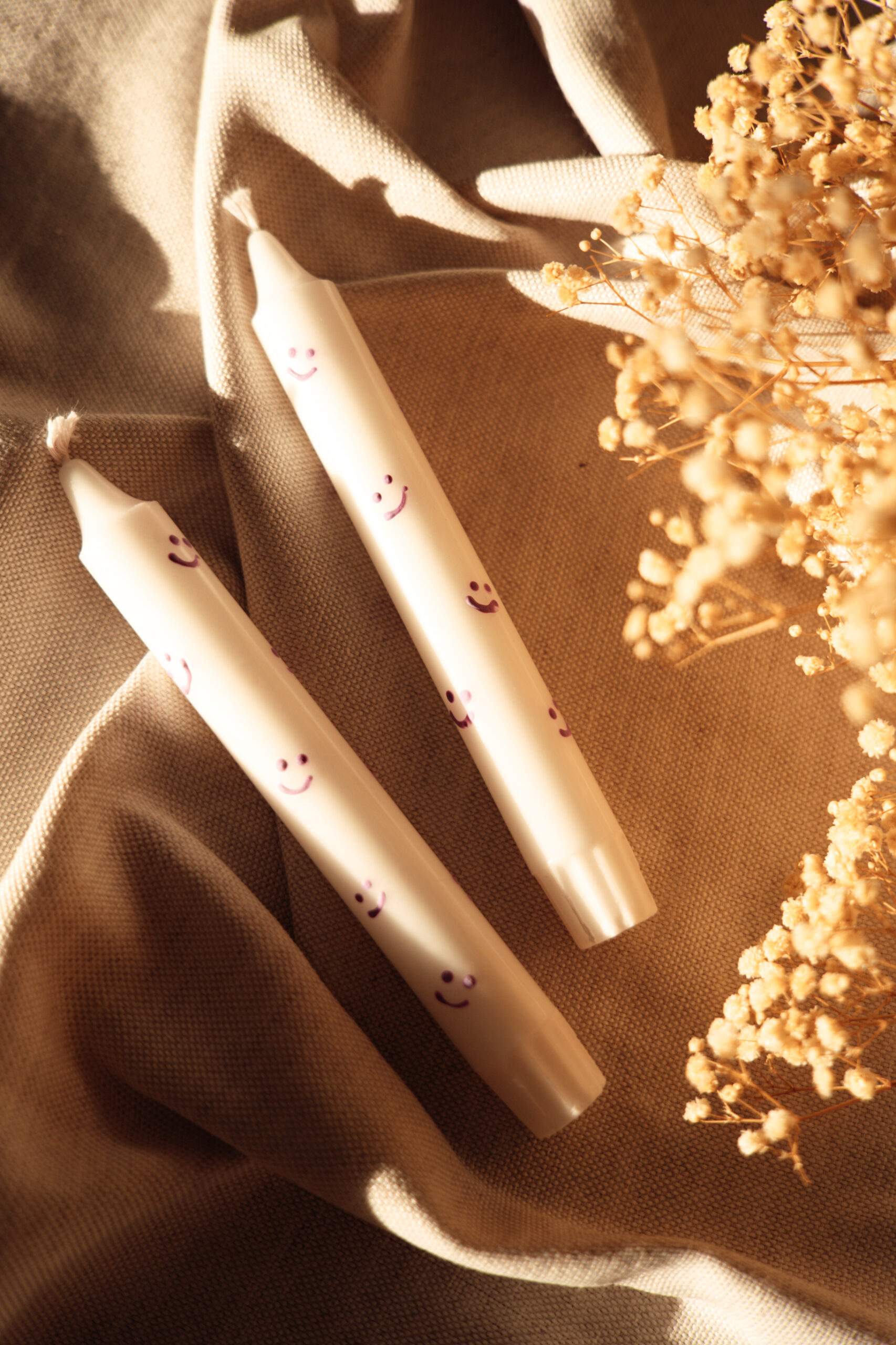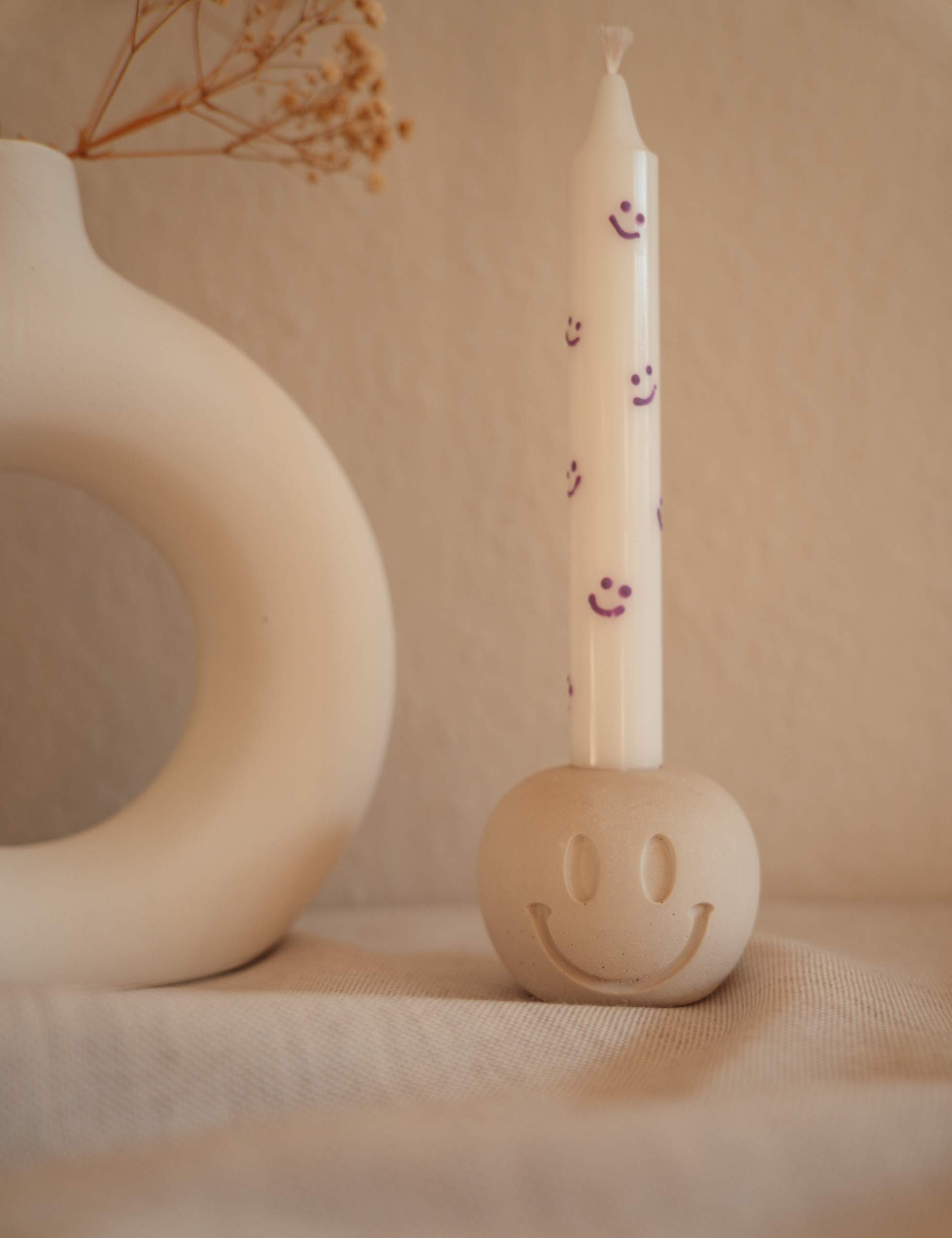 Bring dein Zuhause zum Leuchten mit unseren Stabkerzen in der Smiley Variante. Vor allem in Verbindung mit dem Smiley Kerzenhalter aus Gießkeramik schenken dir die Stabkerzen mit per Hand gemalten Smileys ein Lächeln für jeden Tag. Der Gute-Laune-Faktor für deine vier Wände!